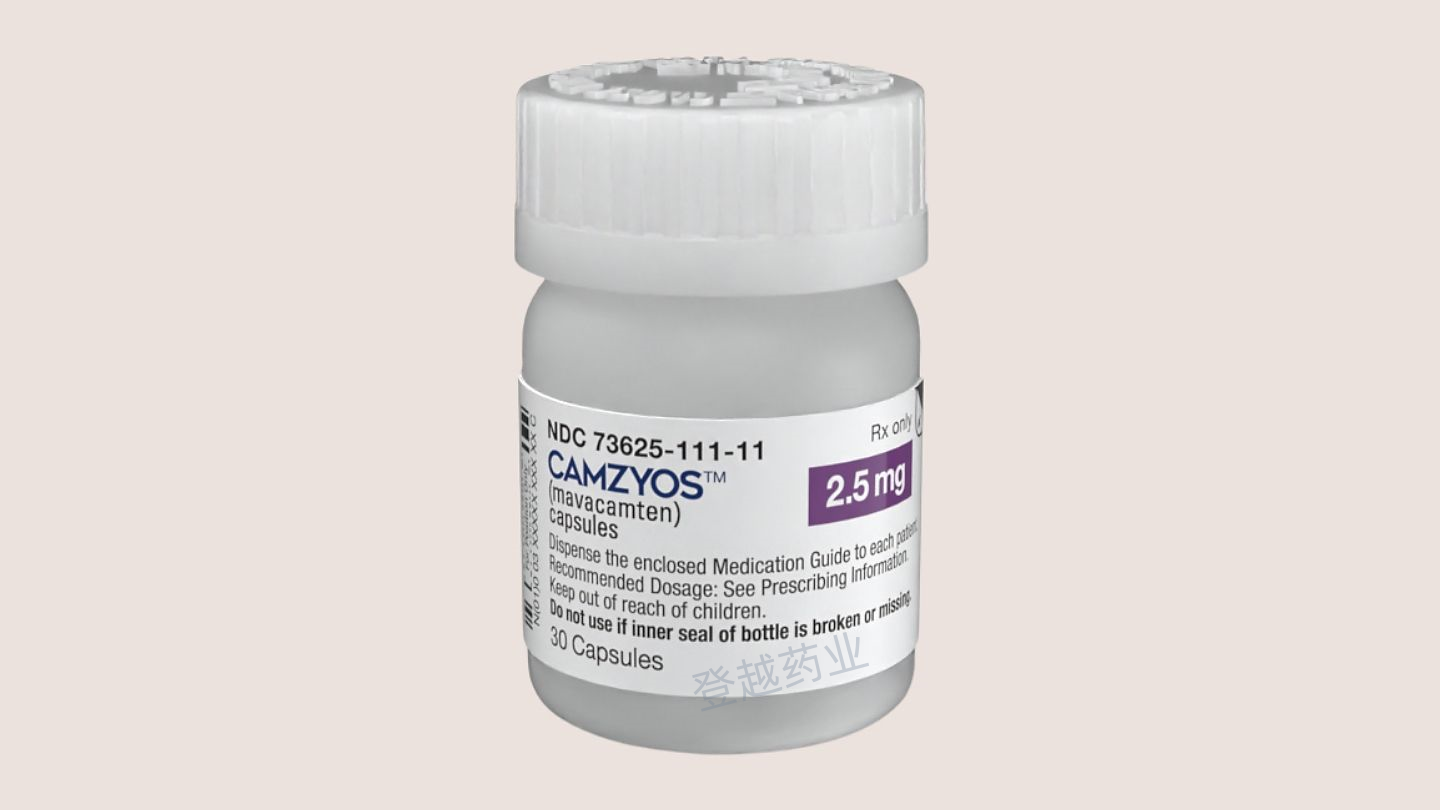 CAMZYOS® (mavacamten) 是首个也是唯一一个在美国获批的心肌肌球蛋白抑制剂,用于治疗纽约心脏协会(NYHA)II-III 级阻塞性肥厚型心肌病(HCM)成年患者,以改善其功能和症状;在欧盟,该药物也获批用于治疗症状性(NYHA II-III 级)阻塞性 HCM 成年患者。该药物还已获得五大洲国家和地区的监管批准。