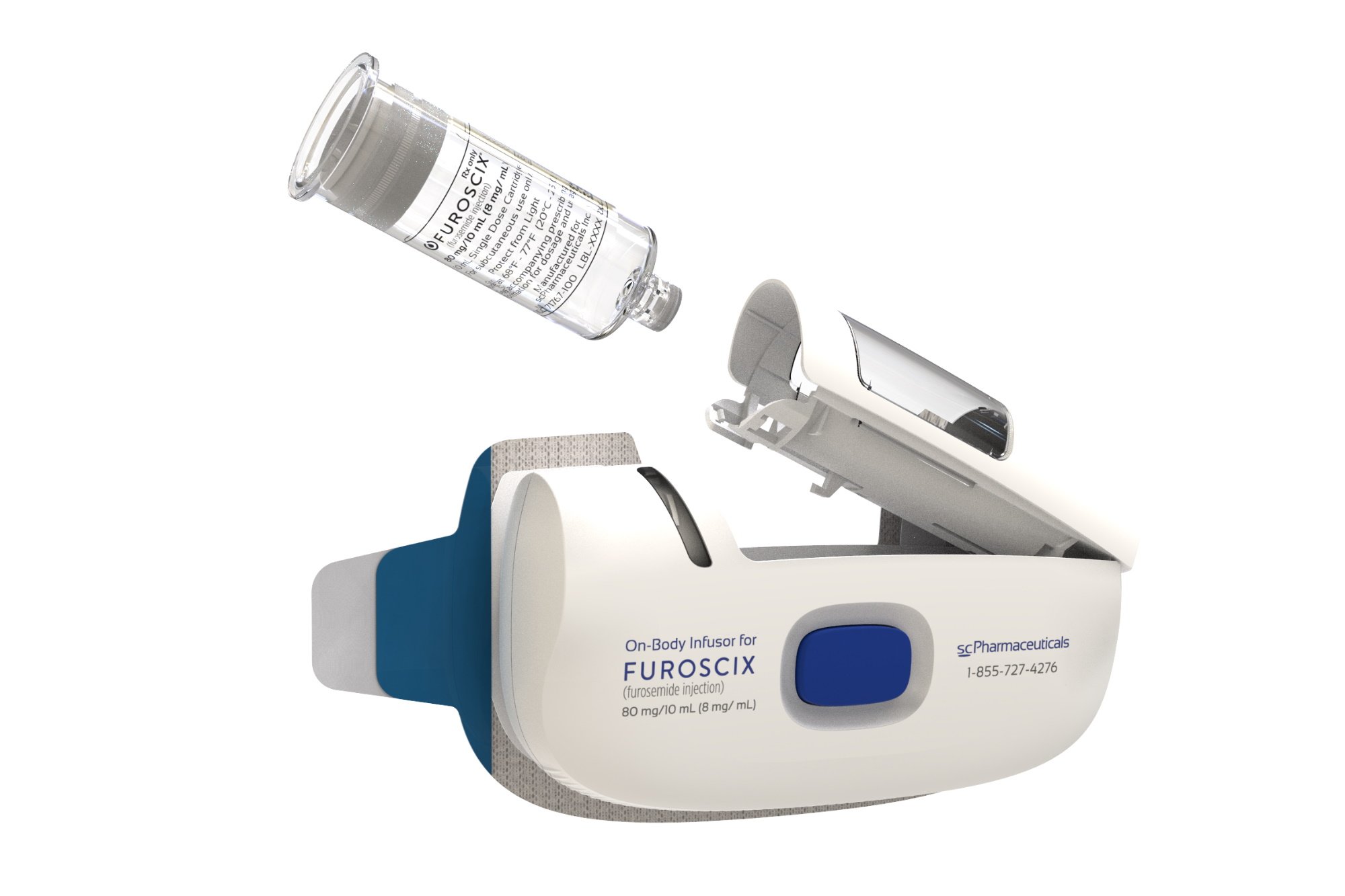 Furoscix 输液器可输送 80 毫克剂量的呋塞米,其中第一个小时内输送 30 毫克,随后 4 小时内每小时输送 12.5 毫克。...