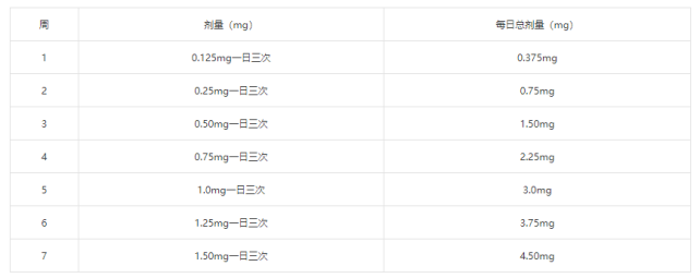 2. 对于需要进一步缓解症状的患者,剂量可每4-7天增加一次(0.125-0.25-0.5)。
