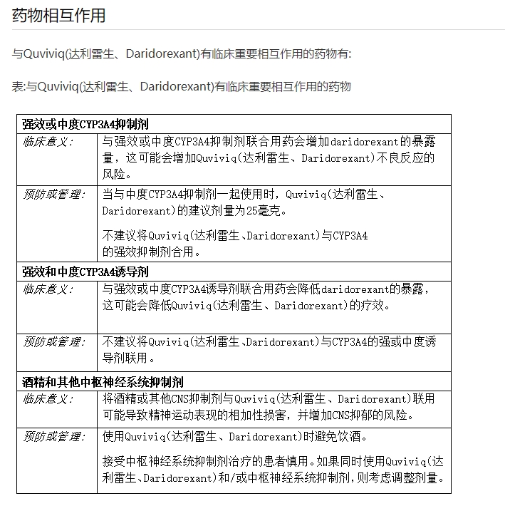 Quviviq(达利雷生、Daridorexant)会增加嗜睡和昏昏欲睡的程度,老年患者在服用该药物后跌倒的风险较高。