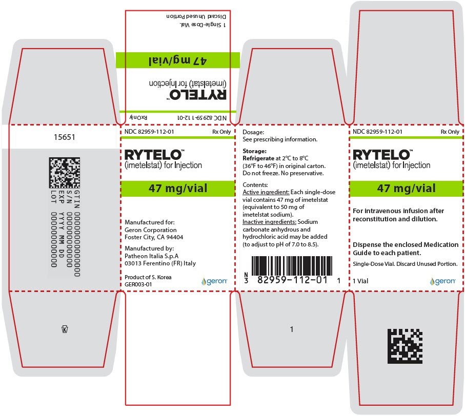 一瓶Rytelo 47mg单剂量药瓶(NDC 82959-112-01)和一瓶Rytelo 188mg单剂量药瓶(NDC 82959-111-01)。
