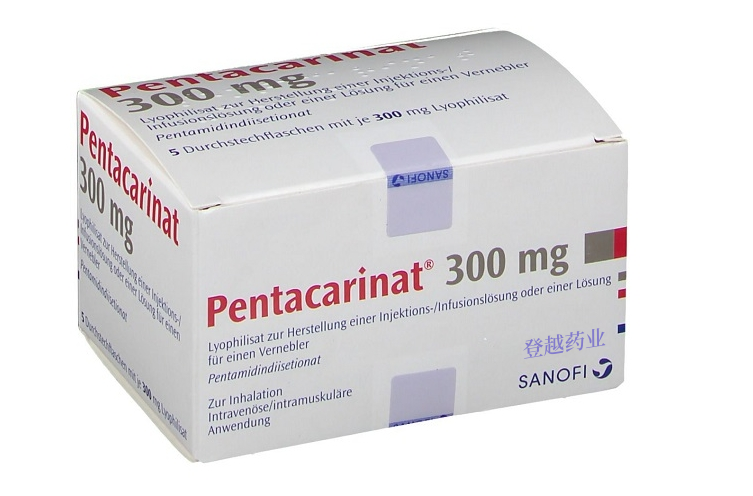 Pentacarinat是一种无菌、白色至类白色的冻干粉末,装在单剂量小瓶中,用于复溶后的使用。每瓶含有300mg活性物质羟乙磺酸喷他脒(相当于172.4mg喷他脒碱)。每盒Pentacarinat含有5个单剂量小瓶。